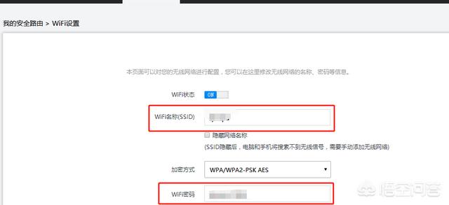 在路由器的WiFi设置中,设置无线WiFi的名称和密码;