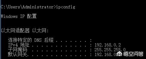 在开始运行中,输入“cmd”,在DOS窗口,通过“ipconfig”命令查看地址。