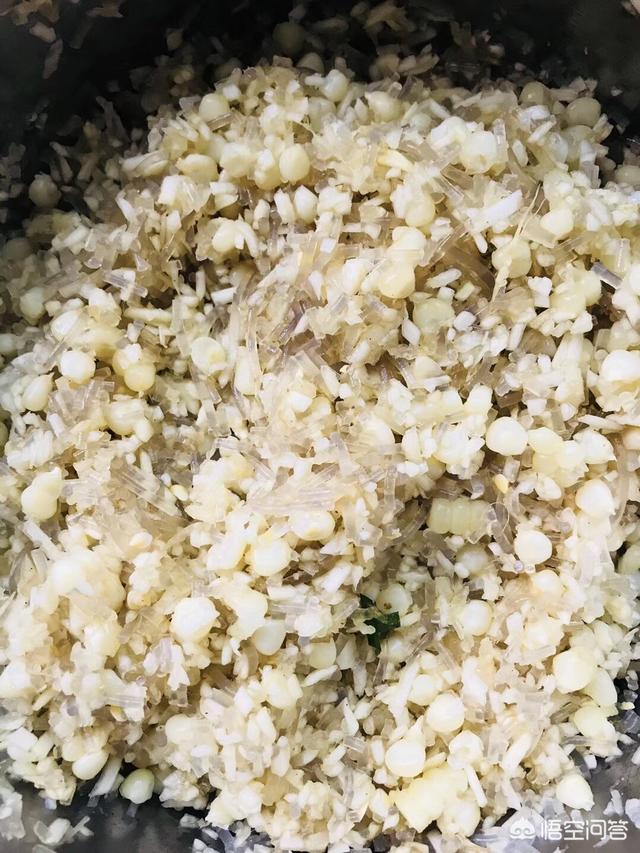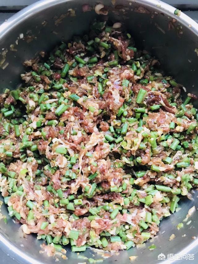 5/12 凉了放大头菜丁、少许鸡精拌匀,馅就做好了。
