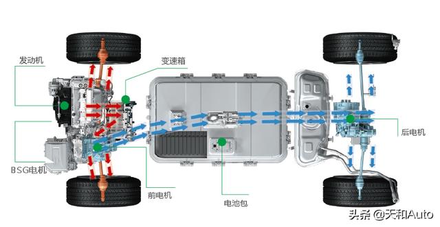 2:比亚迪DM3.0系统碾压EDU/ECVT系列!因其平台已经有颠覆性升级,内燃机集成了BSG发电启动一体机,这等于把ECVT的发电电机择出来与内燃机集成;其次驱动电机独立布局于P3前桥实现最低等级的双擎前驱,然而性能与能耗仍然超越双擎E+。剩下的P4后桥双擎后驱加全时四驱,以及P3+P4的三擎全时四驱有强大太多的动力储备,而且传统结构的混动专用变速箱也能让内燃机充分发挥性能。