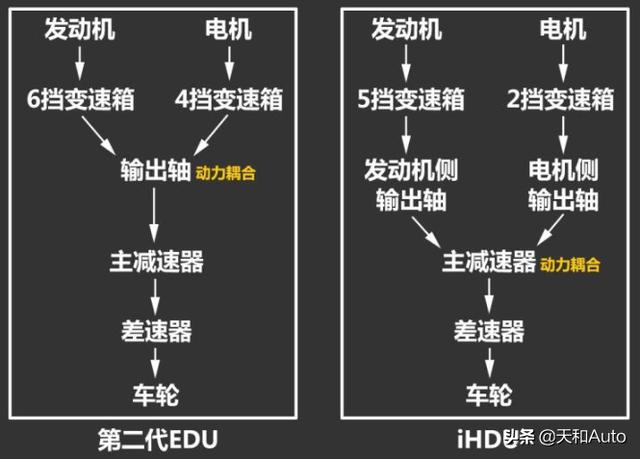 2:ECVT是一台集成电机的【横置前驱变速箱】,虽然结构与CVT不同但布局没有本质的区别。结果是小小的箱体内集成两台电机,驱动电机的功率就会被严格的限制。