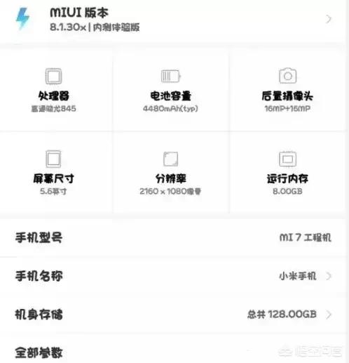 根据媒体的持续曝光小米7配置应该是2160×1080分辨率的5.6英寸屏幕,骁龙845处理器,最高8g+128g,4480mAh容量的大电池。双1600万像素摄像头