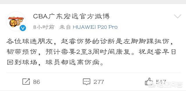 伤情确认是脚踝扭伤和韧带损伤,对广东的阵容当然会有一定影响,但是按照广东历年来的8团队作风,应该能完美的挺过去