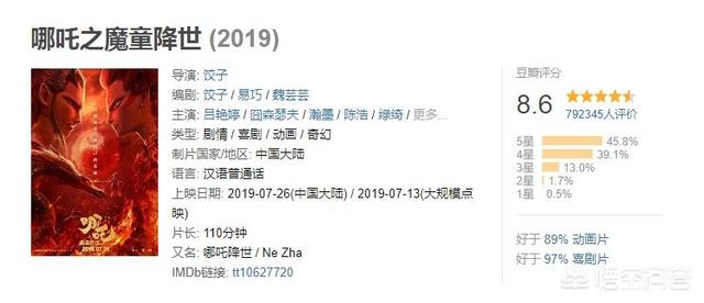 可以看到,两部电影评价人数都达到了几十万,可见两部的人气都很高,同时评分也较为可信,在大众口碑这一点上哪吒略胜0.3分。