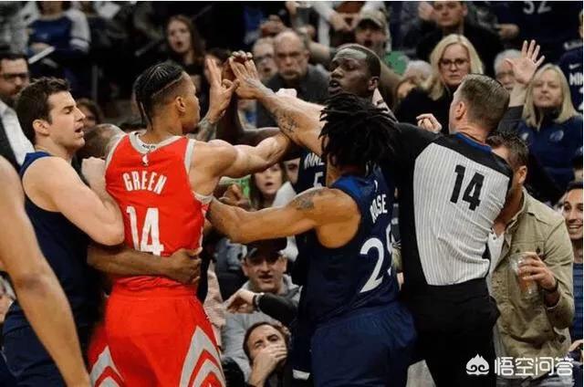 首先本场比赛中,看出了森林狼与火箭的差距,保罗防守绕前,惹怒了吉昂,但是我们通过慢镜头可以看到,保罗手部有非常明显的推搡,导致吉昂不满,故此,推了保罗一把,格林出来为老大挡箭,体现了格林的热血与激情,也体现了火箭的团结,这在过去几个赛季是没有的,记得霍华德在火箭时,有一场比赛,哈登绝杀,霍华德却没有表现出很热情,一副心不在焉的样子,只能说本赛季的火箭是真的进步了。