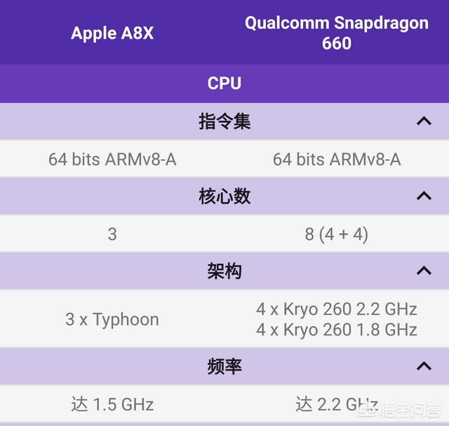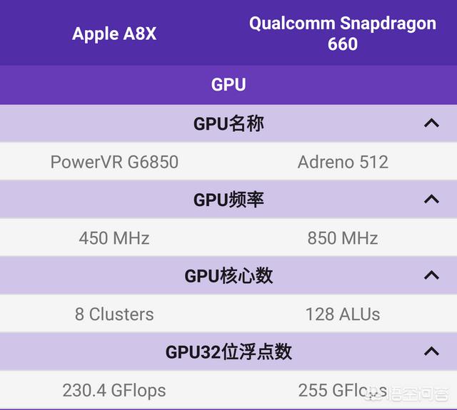 虽然说CPU核心数差了很多,但A8X是大核心,性能很强的。GPU方面,骁龙660斗不过A8X差距还是比较明显的,毕竟A8X的GPU足以和骁龙820抗衡。
