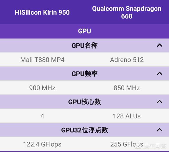 在骁龙660面前,麒麟950根本不是手。然而麒麟960比麒麟950强太多,因此只能用麒麟950来比了。CPU方面,两者差不多。但GPU就不行了,T880MP4根本打不过Adreno512,参考一下,三星8890的T880MP12和骁龙820的Adreno530有30%左右的差距。