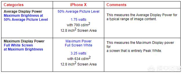iPhone X 显示全白图像,亮度634nits(日常使用最高亮度),此时,这个时候屏幕的功耗可以达到3.25W。3.25w是什么概念?iphone7 全白图像,亮度602nits,功耗也才1.08w,就算和iPhone X相同的亮度,功耗目测有1.2W左右,可以看到,这个时候A屏的功耗几乎是LCD的2倍还要多。结论就是任何说A屏省电的都是耍流氓