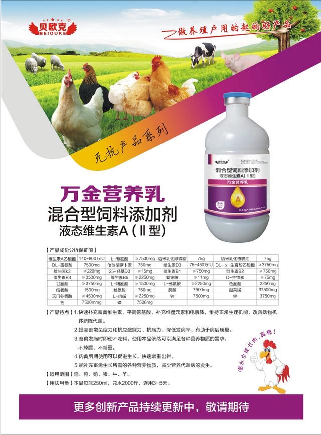 维生素没有具体的浓度要求,过高容易浪费,吸收不了,低了又满足不需求。建议用我们的万金营养液,维生素,氨基酸,矿物质,能量全都有,很齐备。想要雏鸡建康,既要营养全面,又要用健康安全的开口药,控制细菌性疾病,建议使用无忧水开口。以确保雏鸡的成活率。