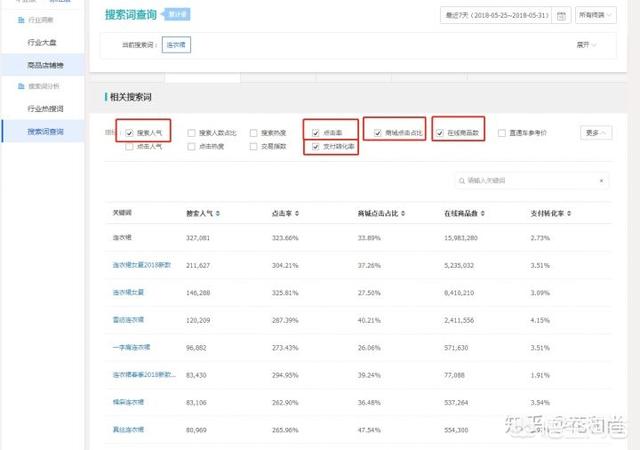 我们第五步可以用生意参谋的市场行情找出关键的数据。