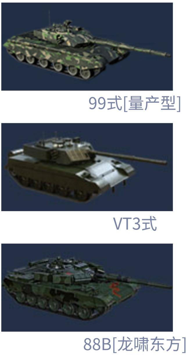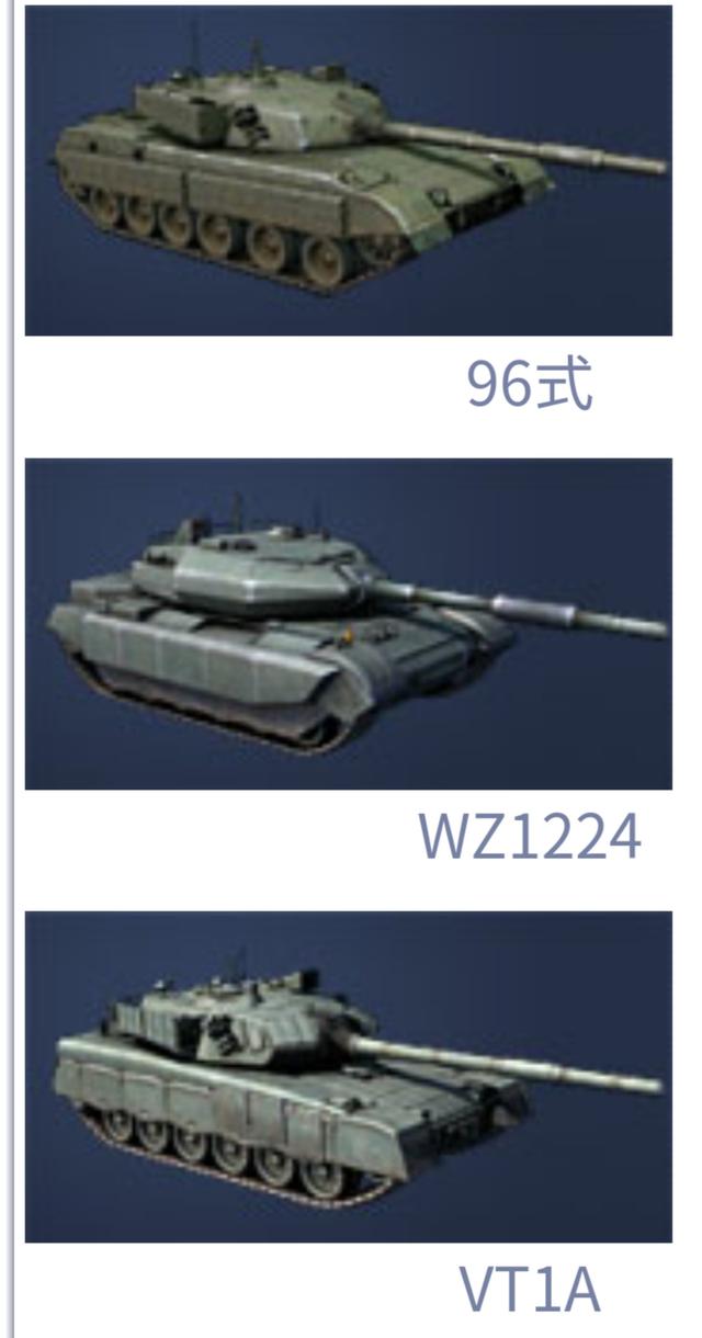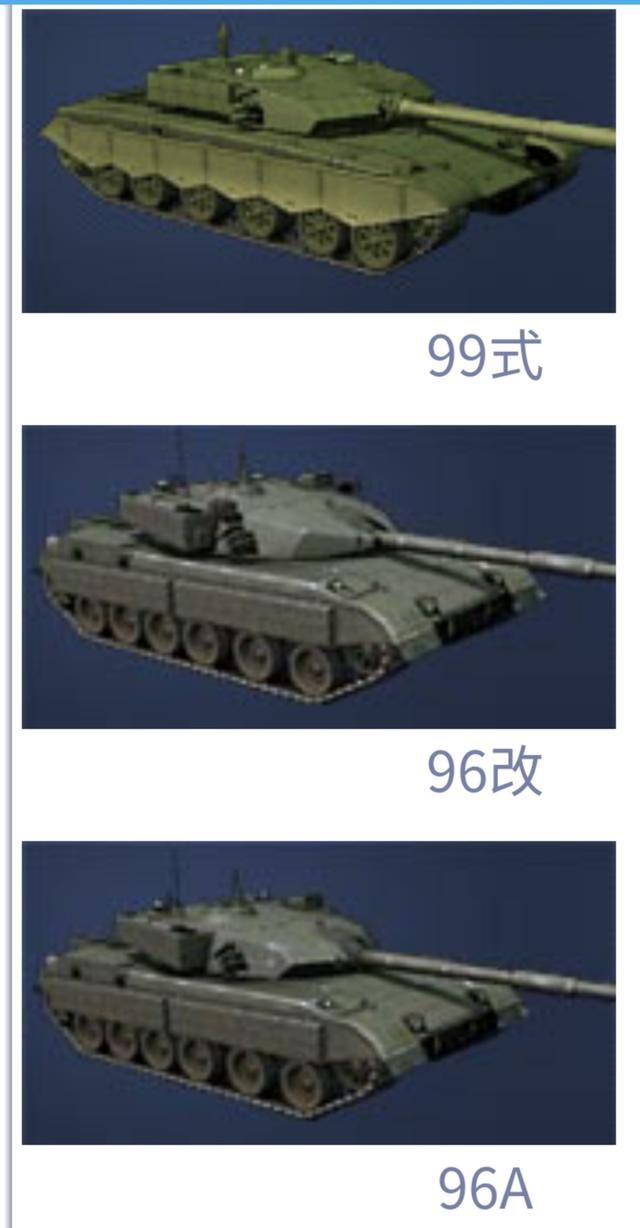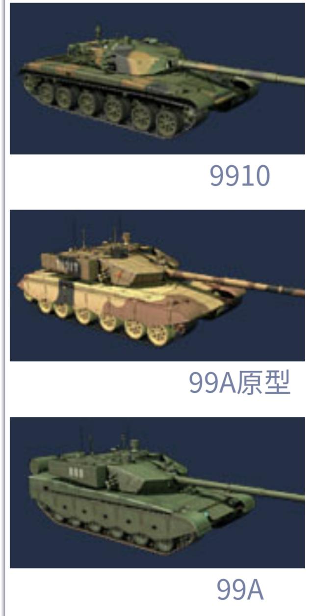 VT系列一般为出口型,外观差不多,现在已有VT5,另外99A之后可能会有99-140目前尚不确定。此外还有15式轻坦、62G、63A等型号。2017-07-28 18:01:58 -