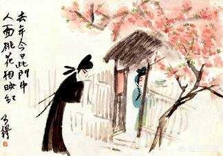 这首诗描写了崔护独游长安城郊,无意间走到一处桃花盛开的农家门前,和一位貌美的女子构成了一副唯美的画面,第二年再来时却已经物是人非。