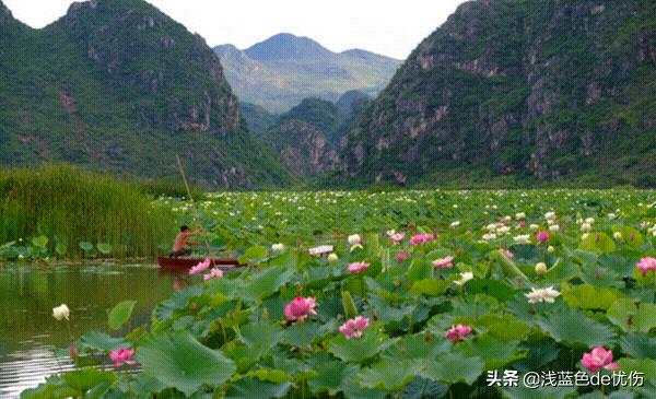 普者黑位于云南省文山壮族苗族自治州丘北县城西北,境内一座座散落的孤峰间,延绵环绕着40里的水路、万亩野生荷花、一望无际的桃园和世界最大的岩溶湿地,被誉为“世间罕见、中国独一无二的喀斯特山水田园风光”。每年6-9月,是普者黑荷花绽放的季节,千亩荷花洒在水面,荷叶翠绿,花色多样,亭亭玉立,荡舟穿行其间,清香扑鼻,令人陶醉,如置身于诗画之中。