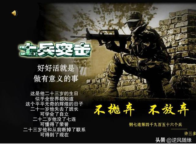 第一次看士兵突击的时候,不知道为什么代入感很强,也许是一代兵王成长记,写出了很多草根的心声吧。里面许三多的经典名言,不抛弃不放弃现在还如雷贯耳。