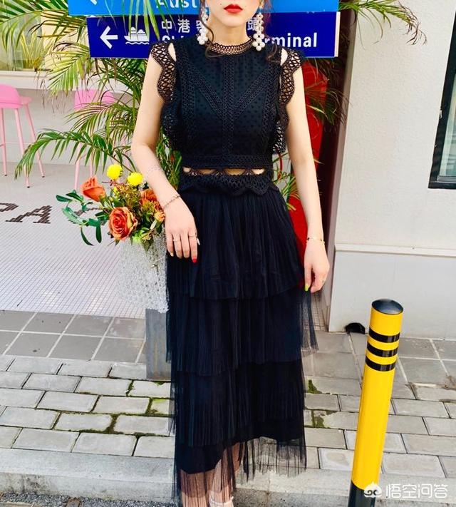 戚薇身穿一袭黑色的仙女裙,上半身的设计是带点西装的款式,内搭白衬衫以及配上黑色的领结,霸气又不失女人味。别老吐槽仙女裙不好穿,脚踩黑色的高跟鞋,同色系搭配不仅不容易出错,而且黑色更容易让你穿出走路带风的感觉。