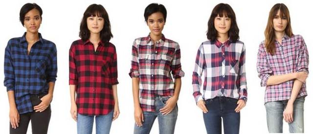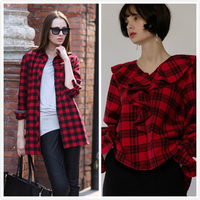 同样是红黑格的衬衫,是不是感觉右边加入了荷叶边和喇叭袖的衬衫会比左图的显得更加时尚了呢?