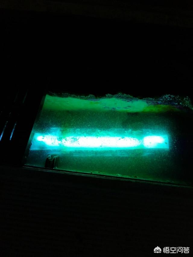 用了杀菌灯以后我基本上一年就换一次水,也就是春节前换一次,因为春节除旧立新讨个吉利说法,要不不换都行,注意一点再换水得时候,一定最少留三分之一的原水,以防鱼儿对水温的不适应,下面看看我的杀菌灯,你们看我的锅滤池几个月没清理了,都脏成啥样了,但是鱼缸里的水依然清澈见底,哈哈顺便在看看我做的假山,就说这些吧,希望对于喜欢养鱼的朋友有所帮助。