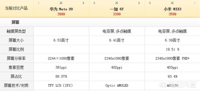 华为mate20屏幕跟小米mix3和一加6T的屏幕有什么区别?哪个更好一些呢?
