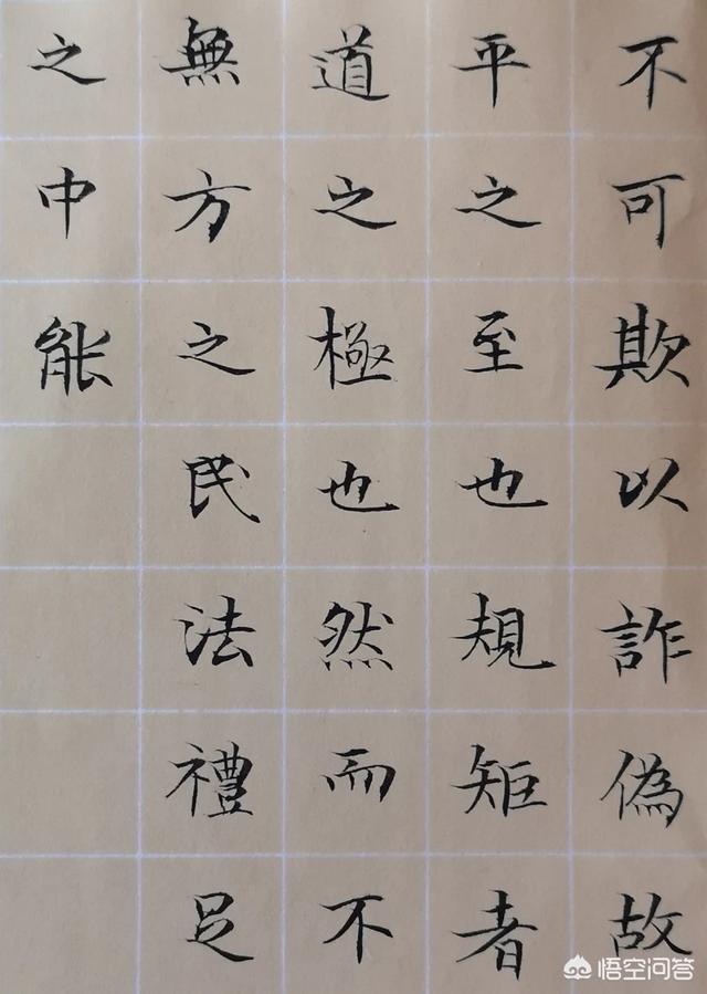既然学书法就一定尊守规矩,不但帖要摆正,坐势也要保持与字的平衡,只有尊重常规才能学的好,进步快。