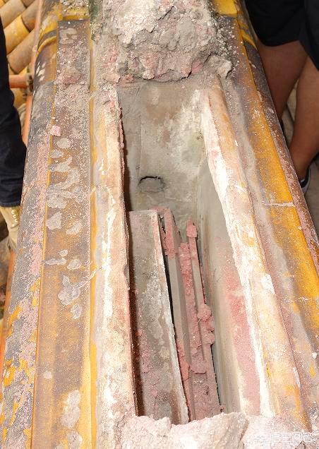 先是简单的一块瓦,后来还要在里面安置一个木盒子,里面装上铜钱、五谷粮食、中药材、银元宝,也有放佛像、珠宝、经书的,统称为“镇物”。