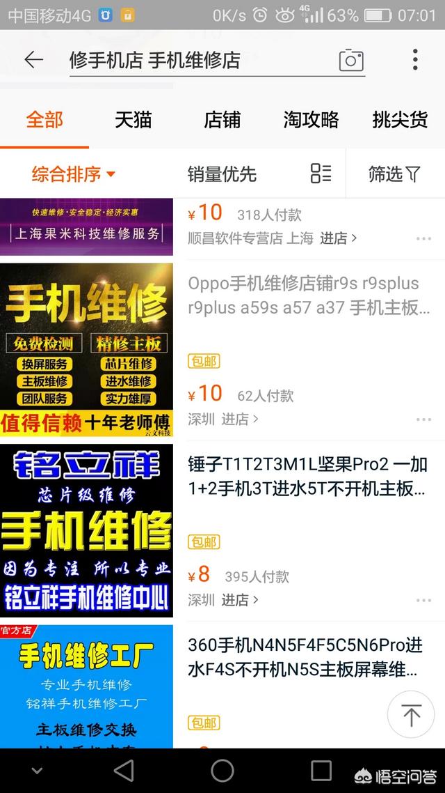 需要淘宝修手机尽量选择店铺信誉高,好评度高的店家,在底下问大家的看是否回答率怎么样,越真实回答的越多,出现的问题也就越多,看卖家的解决问题的态度如何,至少我们要对自己负责。
