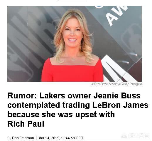 但是没过几天,在美国很多知名的体育记者爆出一则消息,认为湖人队的老板巴斯对詹姆斯以及他的经纪人团队表达了不满,尤其是对詹姆斯的经纪人保罗在过去一段时间,制造出很多传闻,说湖人队想要用更多的年轻球员交易过来浓眉哥,结果把湖人队的一帮年轻小将弄的心不在焉,人心惶惶,这对于湖人队冲击季后赛打击巨大。