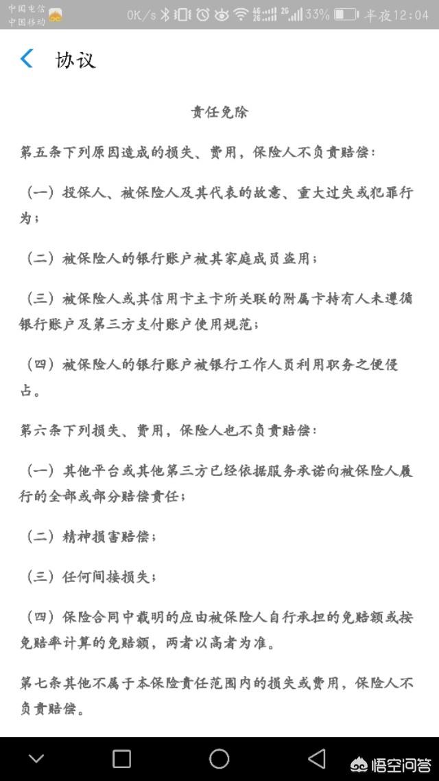 小编还仔细研究了一下账户安全险的协议。保险责任和免除责任条款。
