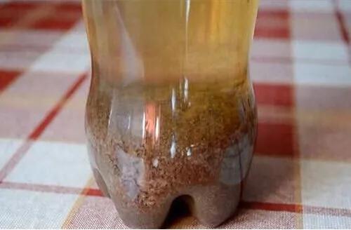 将可乐和牛奶混合在一起,可以发现,瓶中会逐渐形成一个透明地带,可乐颜色越来越淡,并被沉淀到瓶底,而沉淀物越来越多,充满魔性。