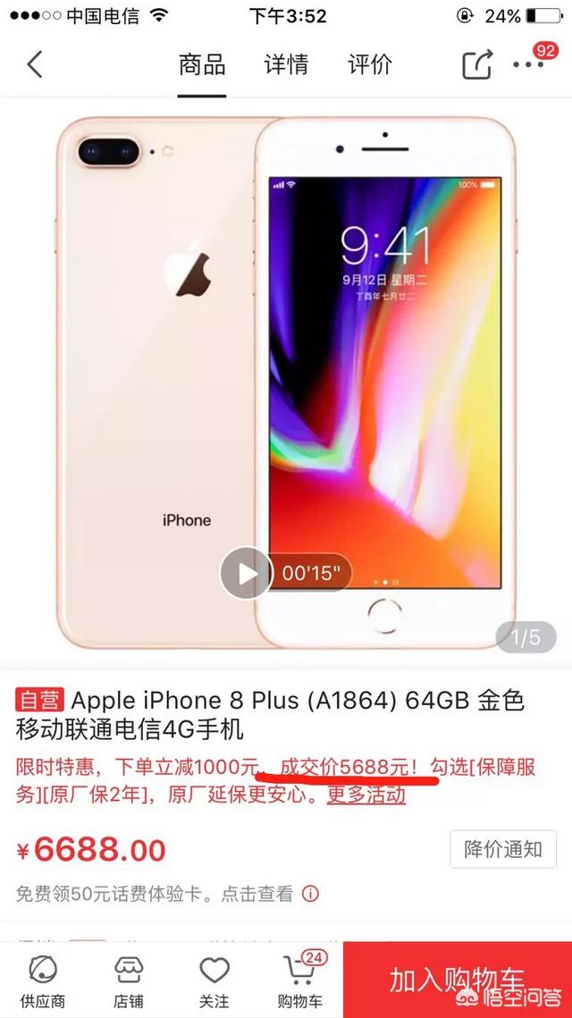 iphone8plus/64GB/5688元为啥去年双十一价格这么优惠,因为iphone8/8plus相对于7/7plus升级幅度不大,还因为iphoneX比8/8plus惊艳很多,所以导致价格降得特别快!