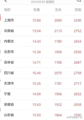 进入4月份玉米价格出现了好转,也是山东地区首先提高了玉米的收购价格,起到了领头羊的作用,也是作为玉米的一个风向标,带动了全国玉米价格的上涨。目前山东地区的玉米价格平均在一元左右每斤,华北地区的玉米价格平均在0.96元左右每斤,东北地区的玉米价格稍微低一些,平均在0.85元左右。看一下,今天全国各地玉米报价: