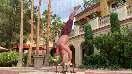 体操动作,徒手倒立。大学时期曾经学会过,很有成就感,全身肌肉协调用力,尤其是上肢力量和手掌手指用力,身体反向平衡感。臀部夹紧,躯干绷紧,手指调节平衡。体操三级以上动作了。