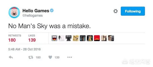 60美元的游戏以及所谓18446744073709531颗星球沦为笑柄 玩家在Facebook Twitter吐槽 连黑客也加入了这场战争 他们黑了开发商Hello Games的Twitter官方帐号 发送了这样一条推文:《无人深空》就是个错误