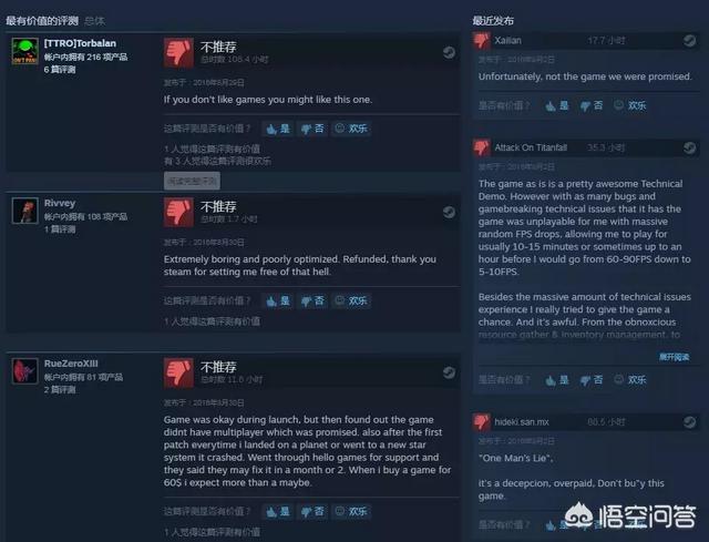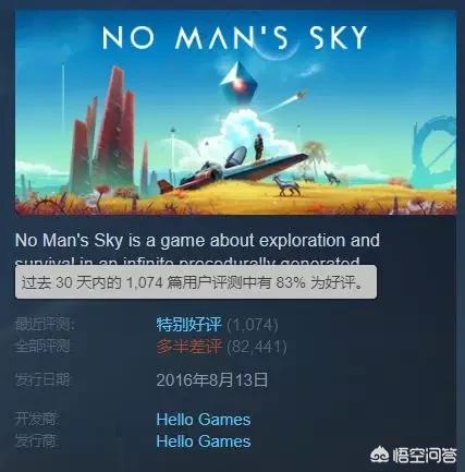 Steam上《无人深空》的在线人数开始小幅度回升 评价也从“多半差评”向“多半好评”缓慢移动。