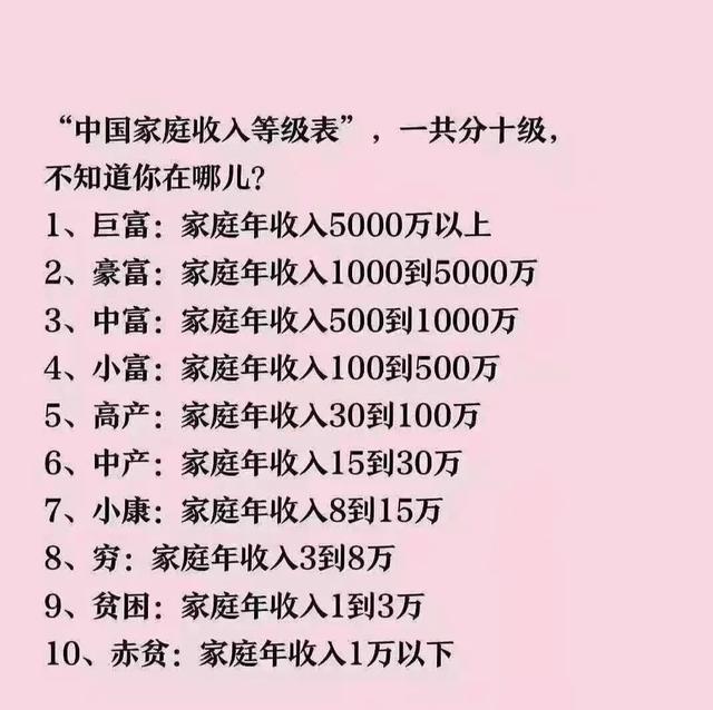 中国收入等级表,快来看看你现在处于哪儿个等级