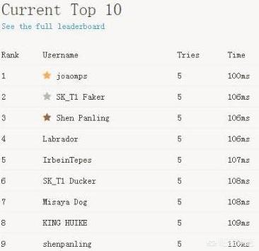 大概2017年的时候,Faker也在直播中玩过一个测试反应速度的游戏。当时他的反应速度是106ms,排名世界第二。测试原理很简单,一个静态页面,在点击开始后某个随机时间内会变色,变色后需要在第一时间点击结束,这时候程序就会计算出准确的反应时间,以最短的那次为最佳状态。
