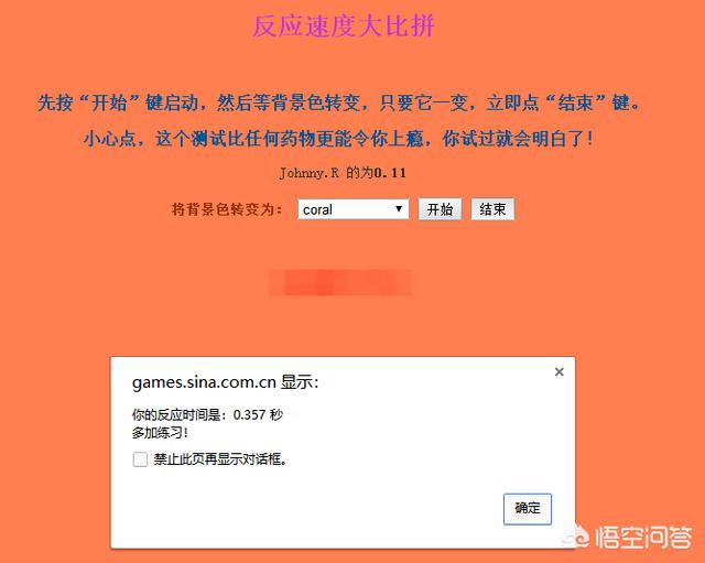 下面这款游戏就是建议的测试反应速度的游戏,狙神Johnny.R在里面的成绩是110ms。