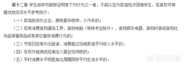 关于这一问题,教育部是有说法的。教育部办公厅在2016年发布的《关于进一步加强和规范高校家庭经济困难学生认定工作的通知》中就提到,“认定家庭经济困难学生应依据其家庭经济状况,不能加入其他非经济因素”。