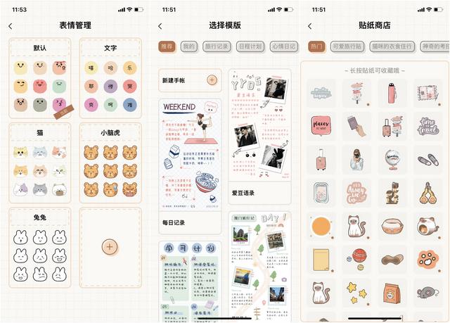 它是一款轻社交电子手帐APP,不需要注册和登录步骤可直接进行手帐创作。支持图片上传,还可以动手绘制属于自己的可爱微表情。自带手帐模板和贴纸,做手帐零成本上手方便。还有一大亮点是,app支持设置密码,完全不用担心个人隐私被泄露。