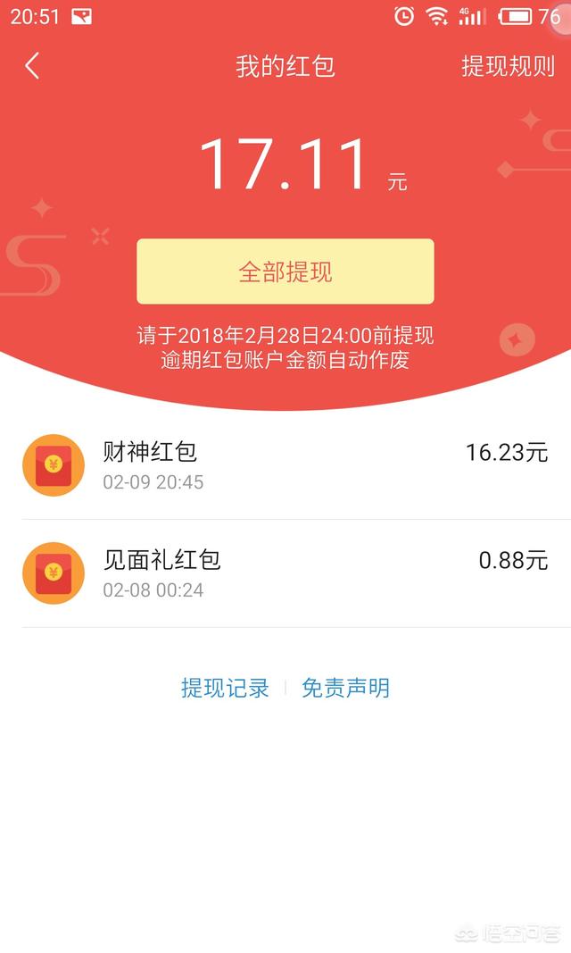 于是就发了个微头条问问好友都抢到多大的红包。没想到好友纷纷留言,使劲往下拽,却见红包不过2,通通晒着自己那0.99元,1.86元,最大的也不过2.98元,顿时心里平衡多了。