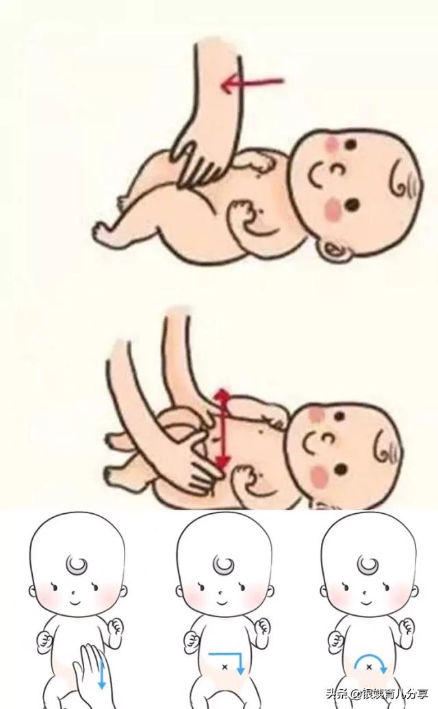 二是给宝宝做排气操:选择在两餐奶之间做,具体步骤见下图。