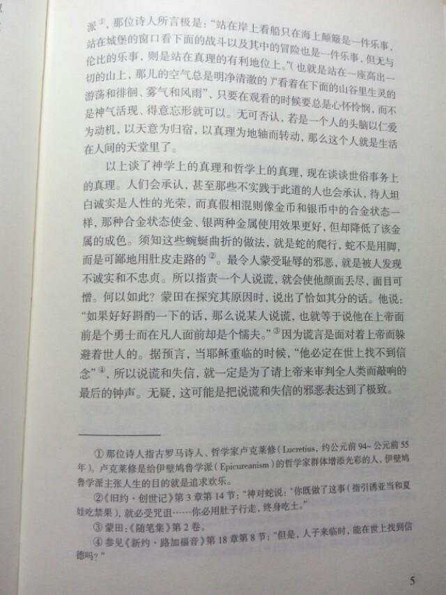 这一页是《培根随笔集》的第一章——论真理。随便看看之后觉得自己的智商被侮辱了。随笔嘛,我们想象中的都是很文艺范啊,名人的随笔应该充满人生哲学啊!没错,这里确实充满了人生哲学,然并卯,我们看不懂啊!