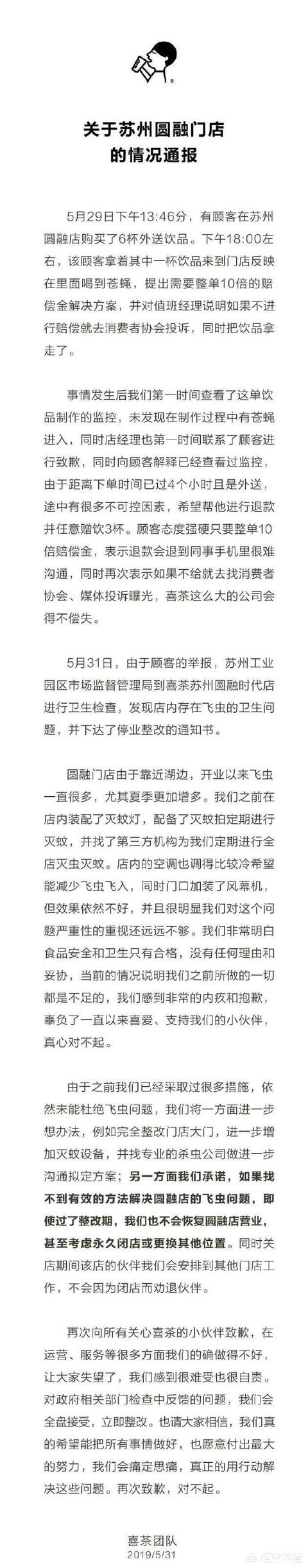 首先这事是5月29日,江苏苏州一位孕妇称在喜茶饮品中喝出苍蝇,被爆出来~
