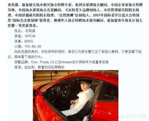 孙英雄。当时没有多少人知道他的名字。我记得有一次是是头条上有很多人发他的炫富视频。他才进入了人们的眼帘。他在百科上是新加坡古风水研究协会特聘专家清华大学古建筑风水客座教授。等等一系列的明年等等一系列的头衔。孙英雄现在在全民TV直播。经常一个月花费34万来达到直播的影响。人们都喊他。帝师 帝师是什么意思呢?帝师就是皇帝的老师。在全中国没有一个人这么狂的敢称自己为皇帝的老师。他是一位风水师,辋川靠着佛牌和看风水月入千万。后来经好兄弟也就是全民TV英雄联盟主播小智的介绍才选择当了主播。成为户外主播之后威胁爱他的所有们直播了很多精彩内容,比如花重金包下私人飞机带观众体验富豪豪华配置。什么牛逼,限量买不到?直播到马尔代夫观看酒店各种酒店还到美国去开枪打枪用坦克压轿车等吸引人眼球的东西。在12月份的时候斗鱼,TV主播卢本伟开挂,就是让他给弄下去的。人们都说他蹭热度。网上还是很多人烦他的,都骂他。不过这小子确实有才不过这小子确实有才。说话一套一套的。