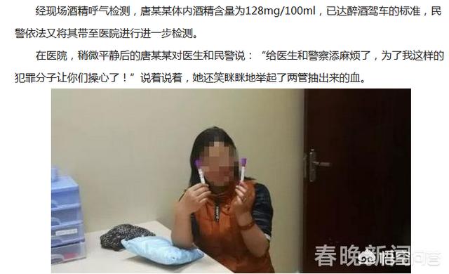 在医院,稍微平静后的唐某某对医生和民警说:“给医生和警察添麻烦了,为了我这样的犯罪分子让你们操心了!”说着说着,她还笑眯眯地举起了两管抽出来的血。虽然事后女司机对自己的行为表示后悔,但是后悔改变不了事实,在此,还希望广大司机朋友们安全出行,拒绝酒驾。这是对自己和交警都是一种尊重。