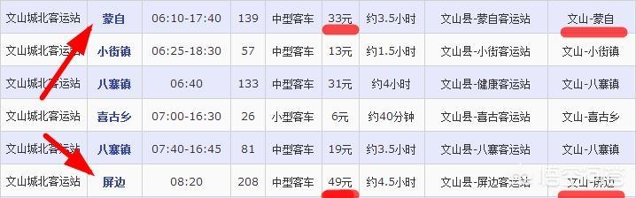 文山—蒙自,班车,座位,3.5小时,33元/人,