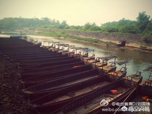 东兴市区北仑河的早晨,阳光光影斑驳,这排机动船是中国的,河很窄,对面就是越南。