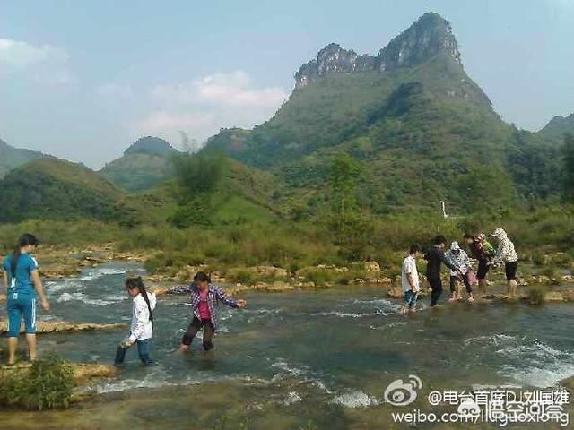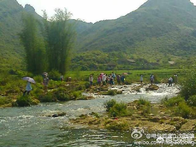 在德天瀑布旁边的老木棉酒店里,就有一条界河,河边有个叠石滩,越南那边的边民成群结队的踩水过来玩。