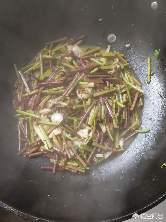 那么它的做法是什么样子的呢?我来给大家说一下。其实它的做法有很多种,具体是哪种好?要根据自己的个人爱好来决定。有凉拌蕨菜,蕨菜拌皮蛋,笋干炒蕨菜,酸辣蕨菜,干蕨菜炖肉皮,凉拌水蕨菜、蕨菜干锅土豆,东北小炒蕨菜炒肉等等。下面我给大家讲解一下我个人喜欢的一种炒菜方式。首先要把新鲜的蕨菜用清水反复冲洗几遍,洗去浮土和表面上的绒毛,先调蕨菜尾部发黑的部分,在滚烫的开水中烫两到三分钟,再放冷水中浸泡时间长一点,浸泡半小时涩味就几乎没有、过好开水的蕨菜,炒,凉拌都可以这是最简单的一种方法,也是最实用的一种方法。大家可以自己去尝试一下,个人感觉味道还是不错的,添加一定的辅助料。