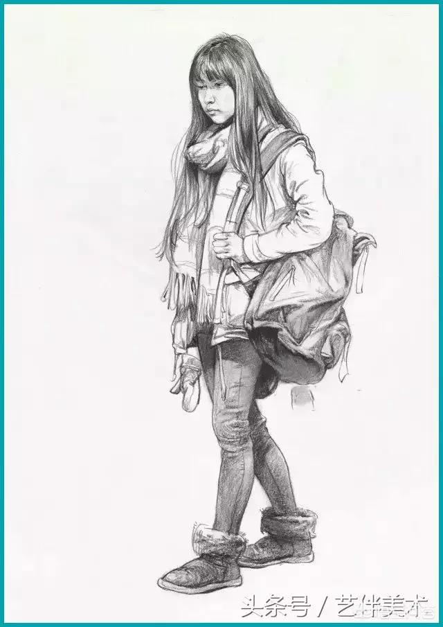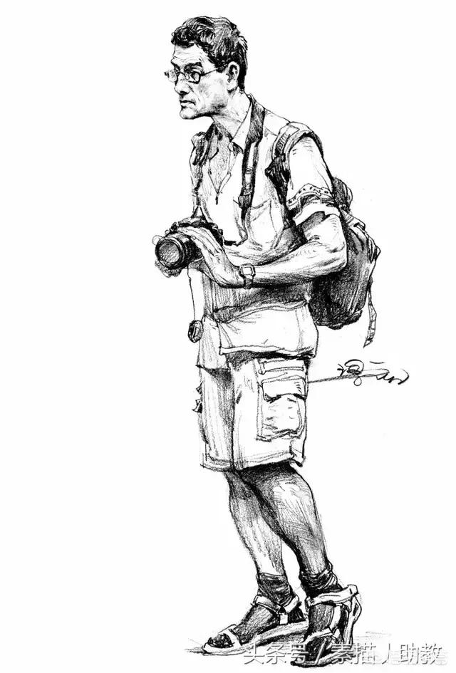 这是一幅速写作品,可以看出是用铅笔完成的,所以,选择铅笔就是一个需要注意的地方。二,了解速写的线条