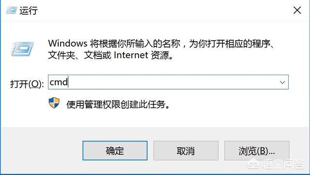 Windows中的命令行工具就是cmd.exe,它类似DOS操作系统,我们按下键盘上的 Win + R 组合键打开“运行”窗口,输入 cmd 后回车即可打开Windows的命令行,如下图示: